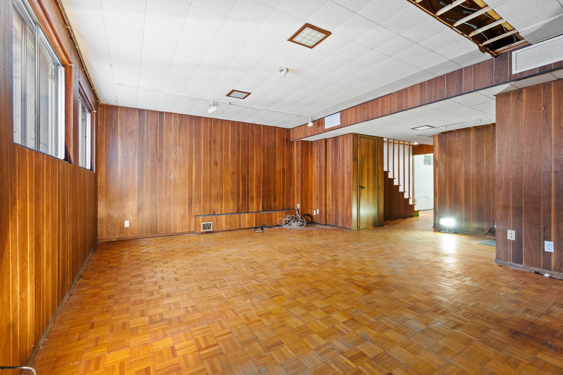 | Family room | 22.9 x 21.1 P | Basement | Parquetry |
